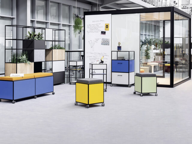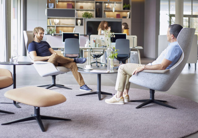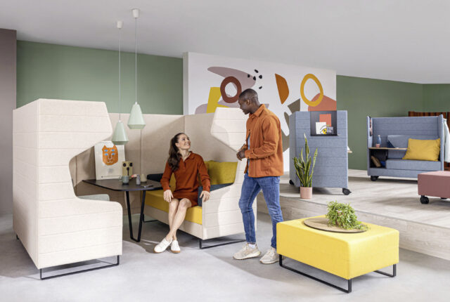 „Mehr als 50 Prozent der Büroflächen werden künftig Orte der Begegnung und des Austauschs sein“, sagt Dr. Jochen Ihring, Geschäftsführer der Dauphin Human Design Group. Offene Lounge-Landschaften, die Kommunikation und spontane Meetings ermöglichen, stehen daher im Mittelpunkt der Office-Gestaltung beim Hersteller Dauphin. Dazu passen variabel stellbare Lounge-Ecken, mobile Elemente auf Rollen oder tragbare Poufs wie die Dauphin Reefs flex und Poufs. Raum-in-Raum-Systeme, zum Beispiel die Bosse Mobile Möbel und Cube, und Cocooning-Möbel, wie die Serie Dauphin Atelier, bieten Gelegenheit, sich für die konzentrierte Arbeit, das diskrete Telefonat oder die Arbeit im Team zurückzuziehen. „Wir machen die Erfahrung, dass bestehende Flächen entsprechend hochwertig und einladend ausgestattet werden“, sagt Jochen Ihring.
