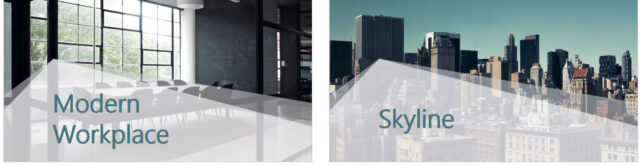 Für einen professionell wirkenden Wiedererkennungseffekt in der Präsentation sorgt die Technik mit einer bestimmten transparenten Form auch bei Bildern, die nicht die komplette Folie bedecken.